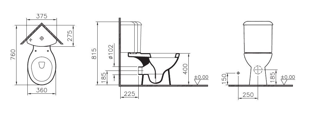 • Укороченный унитаз: