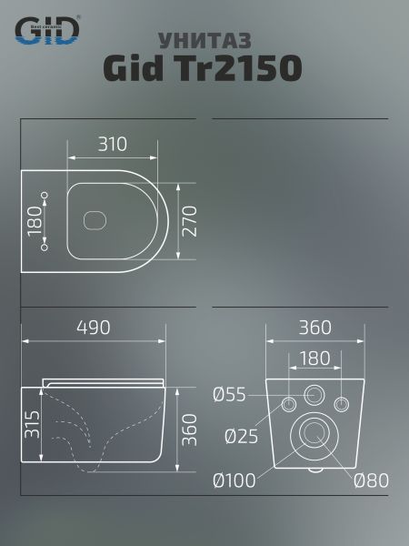 Унитаз подвесной Gid Tr2150 62233Y белый 49x36x36 купить