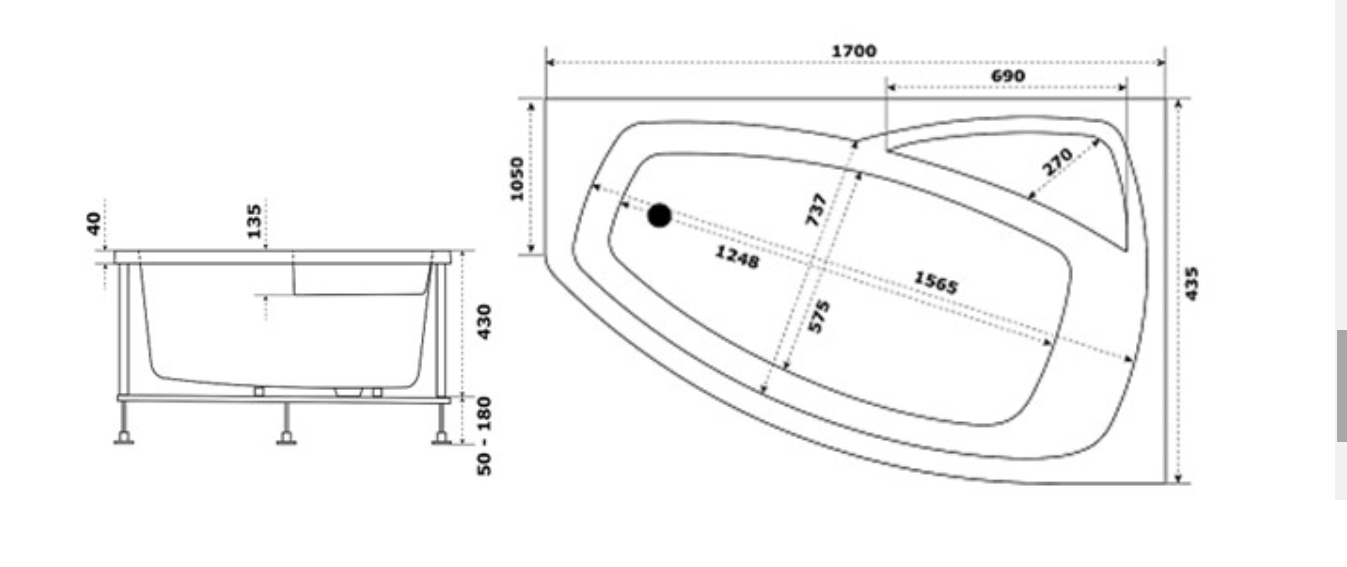 Ванна акриловая Bas Камея 170x105Качественная ванна Bas на усиленом каркасе