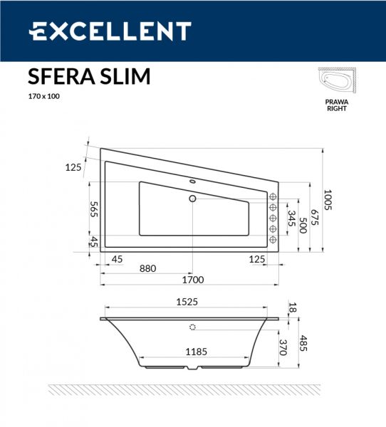 Ванна акриловая Excellent Sfera Slim 170 х 100 см левая. Ванна от Польского производителя отличающаяся высоким качеством и выдающимся внешним видом эфектно впишется в любую ванную комнату. Долгий срок службы подтверждается высоким гарантийным сроком ванн Excellent