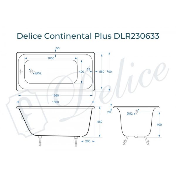 Ванна чугунная Delice Continental PLUS DLR230633 150х70 см
