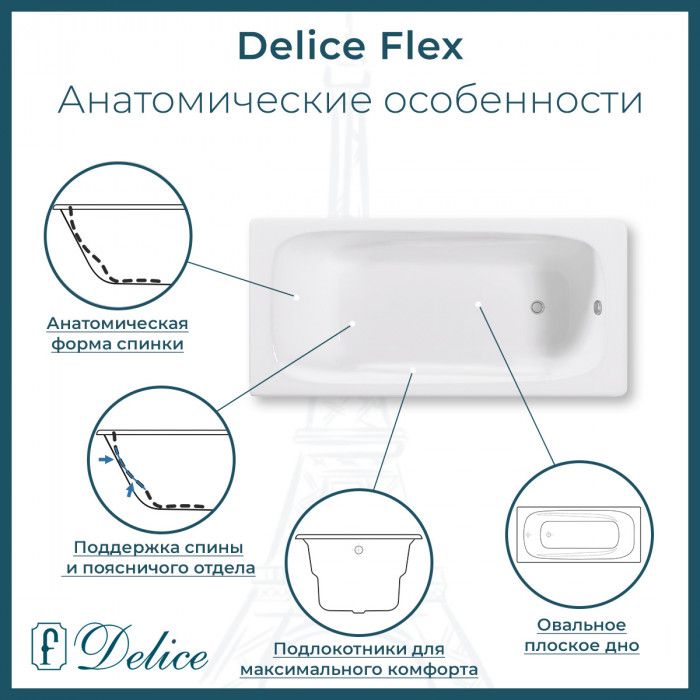 Ванна чугунная Delice Flex DLR230632 180х85