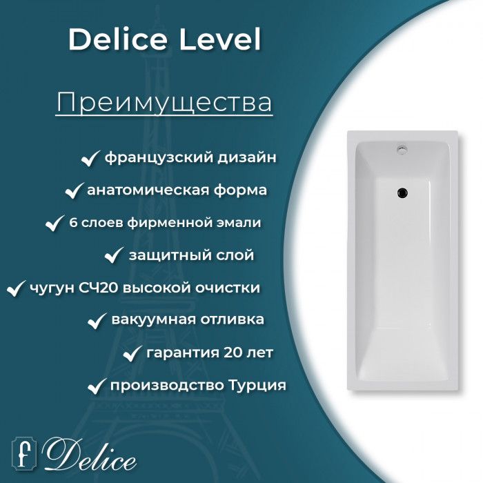 Ванна чугунная Delice Level DLR230618 140х70 купить