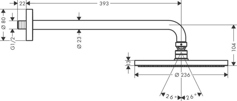 Cостоит из: верхний душ, держатель верхнего душа Тип струи: PowderRain размер душевого диска: 240 мм длина держателя для душа: 390 мм шарнирное соединение: регулируемый угол верхнего душа расход воды PowderRain (при 3 барах): 18 л/мин материал душевого диска: металл монтаж: стена соединительная резьба G ½