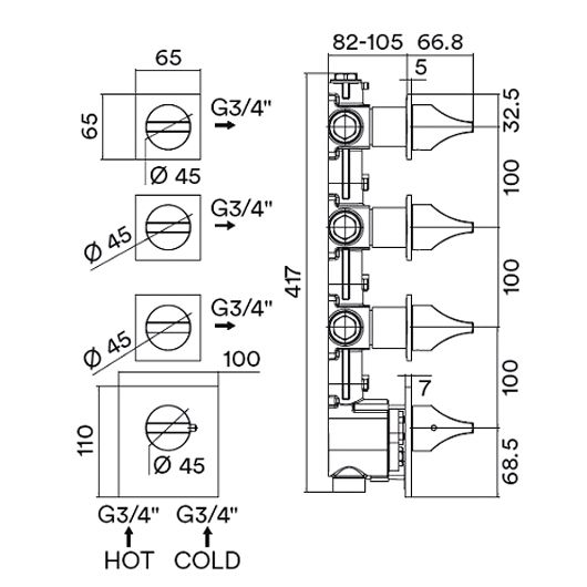 Термостат встраиваемый высокой пропускной способности Bossini Apice — это идеальное решение для современных ванных комнат. Его функциональность позволяет управлять от 3 до 6 выходами воды, что обеспечивает беспрепятственный и комфортный доступ к водным ресурсам. Внешняя часть термостата выполнена в стильном белом матовом цвете, который гармонично вписывается в любой интерьер.