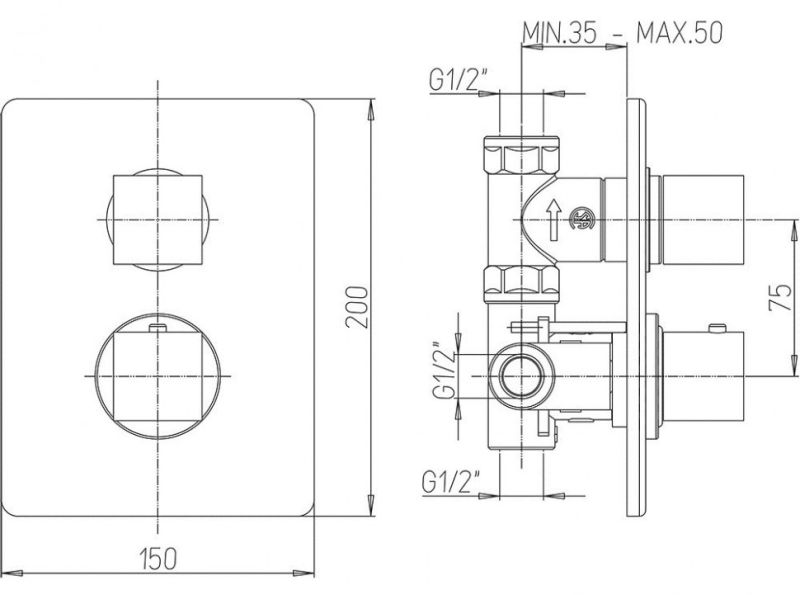 • Встраиваемый монтаж скрывает все соединения и оставляет на виду только рычаг управления, экономя пространство.