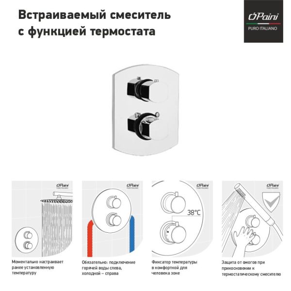 Встраиваемый смеситель для душа Paini Ovo 86CR690TH с термостатом хром купить