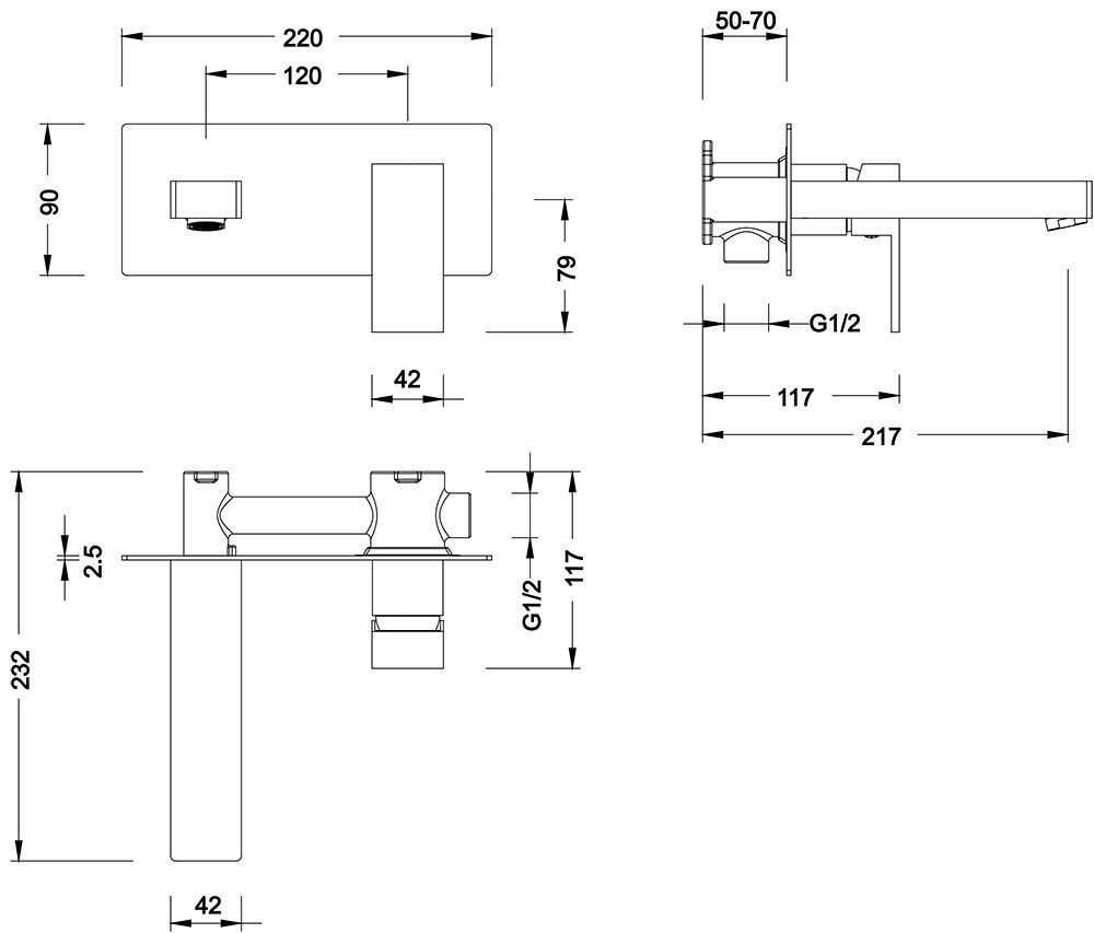• Смеситель для раковины, скрытого монтажа