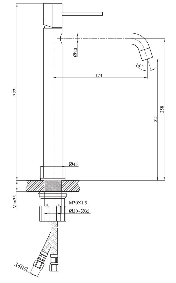 • Высота смесителя: