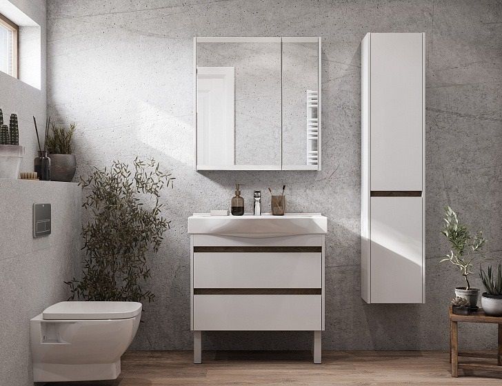Зеркальный шкаф Акватон Нортон 80см белый 1A249202NT010