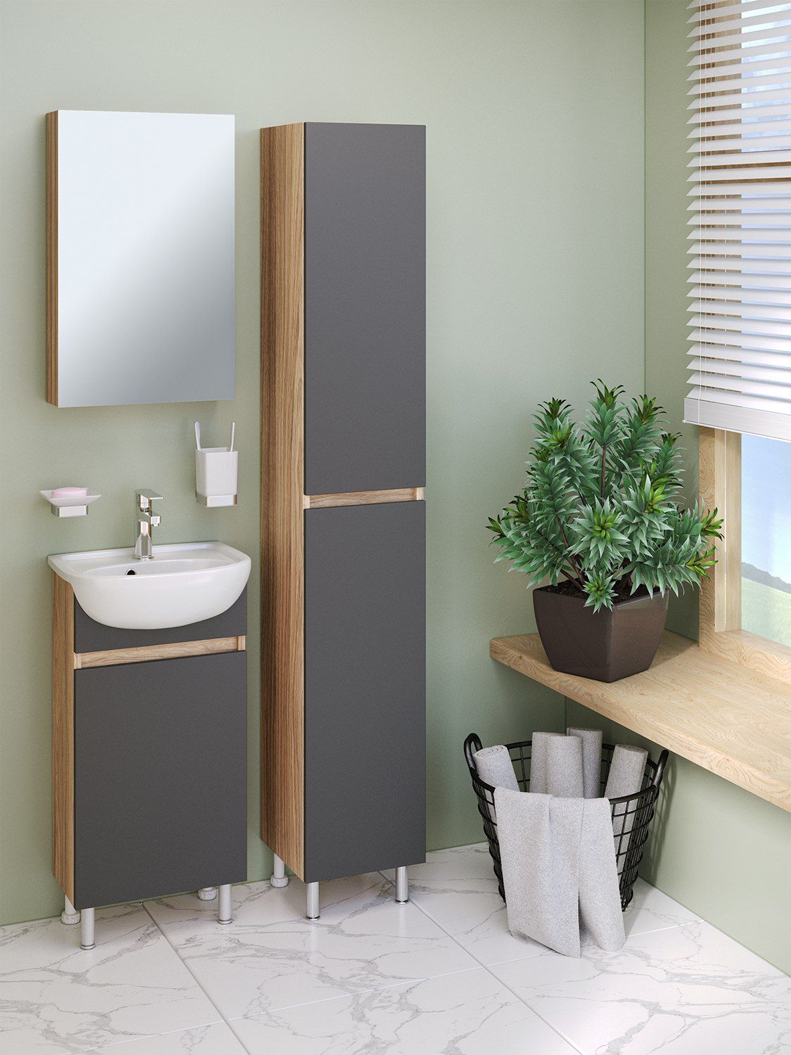 Зеркальный шкаф Runo графит Лада 40 (00-00001193)