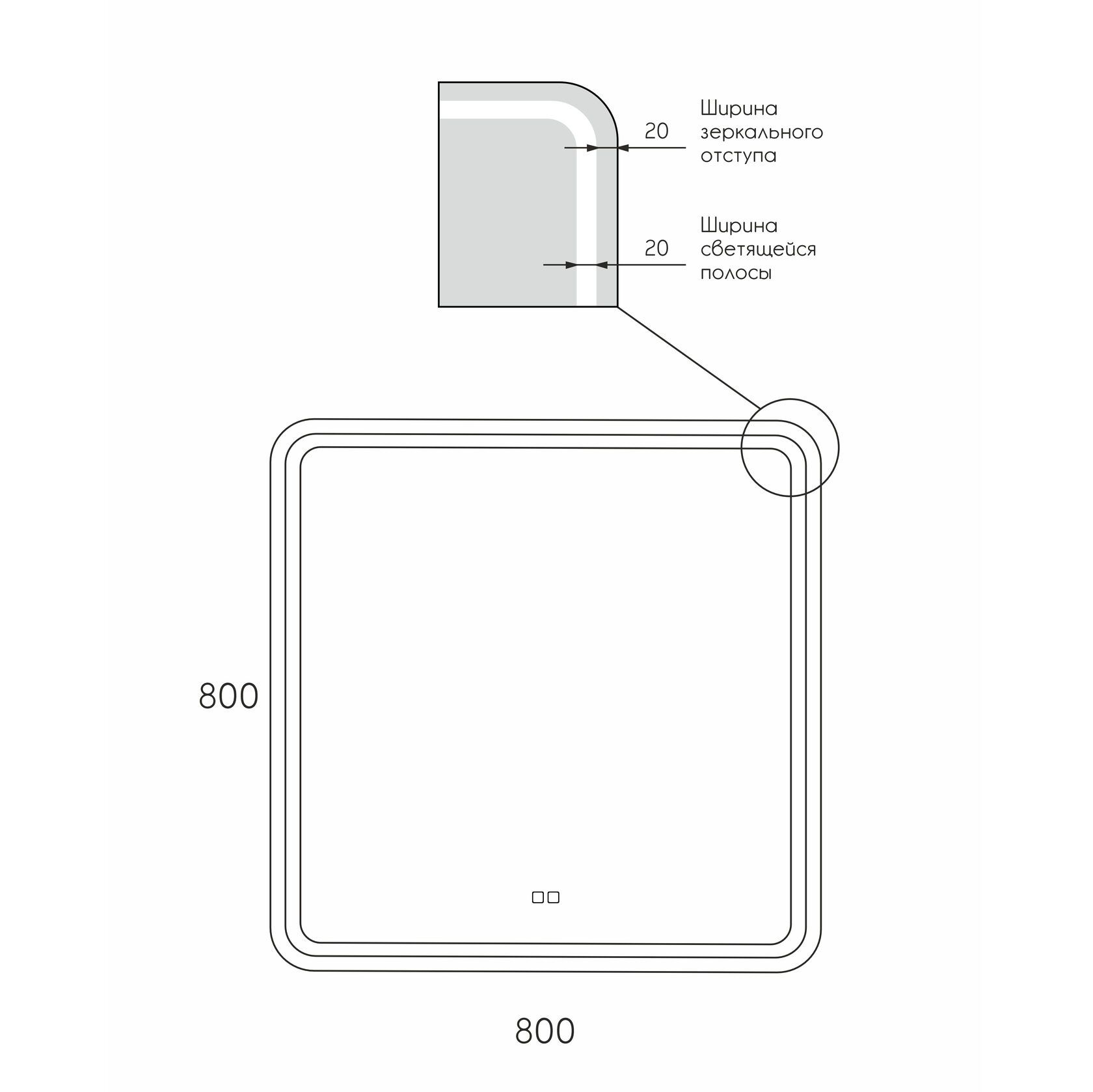 Зеркало Reflexion Blessed с LED подсветкой, антипаром, сенсором 800х800