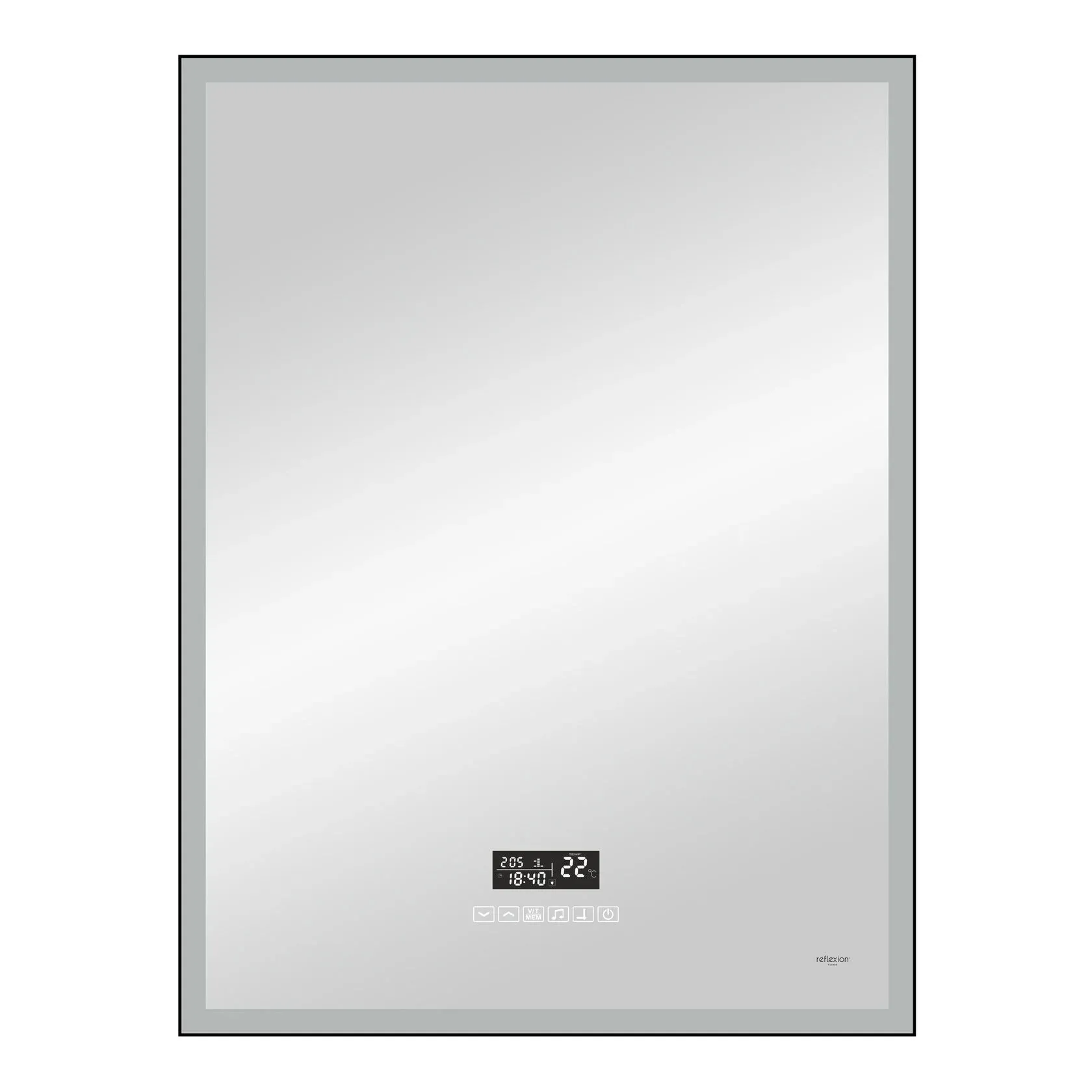 Reflexion Ghost - новый взгляд на интерьерные решения. Стильный современный дизайн зеркала дополнен медиасистемой с Bluetooth, FM приемником часами, термометром. Прекрасное качество звука превратит рутинные гигиенические процедуры в настоящий праздник. Система подогрева полотна предотвращает запотевание зеркала, включается вместе с подсветкой. Четкие лаконичные грани придают утонченный дизайн и подчеркивают минимализм и технологичность интерьера.