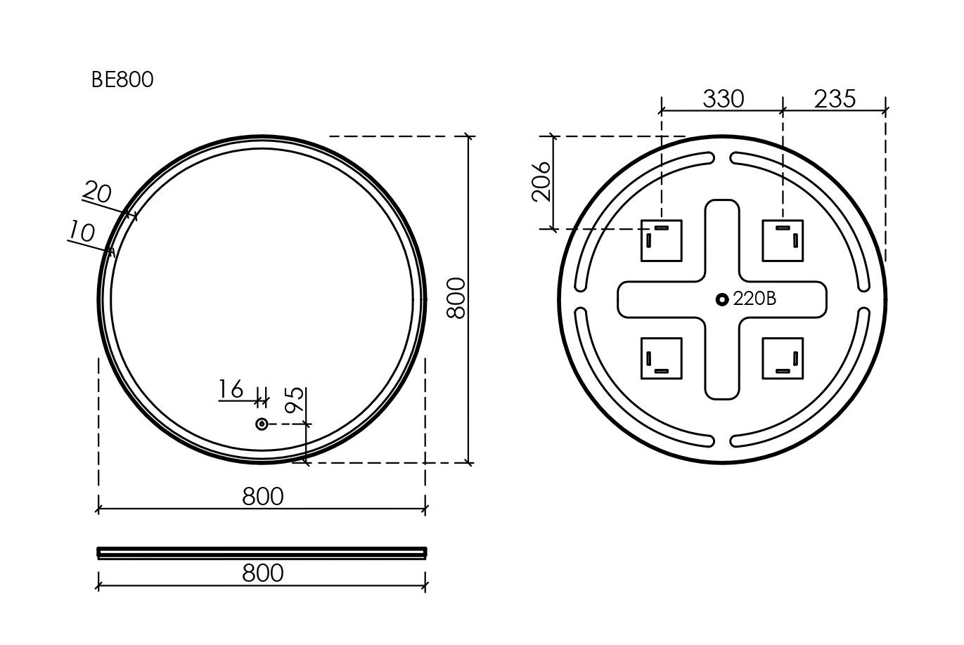 - Зеркало круглое с фронтальной подсветкой