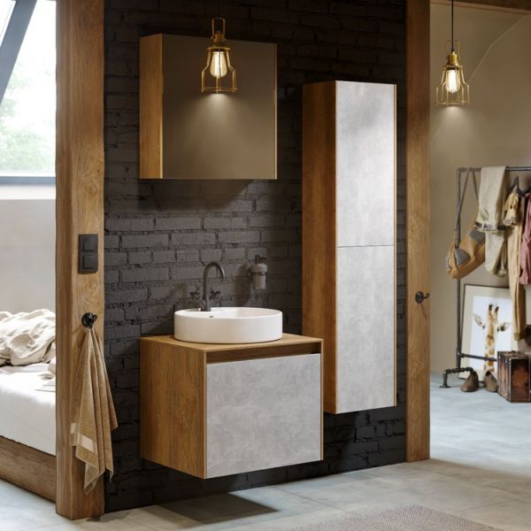 Зеркало-шкаф Aqwella Mobi MOB0406+MOB0717BSH 60 смЗеркальный шкаф 60 см с одной дверью на петлях с доводчиком. Цвет бетон светлый