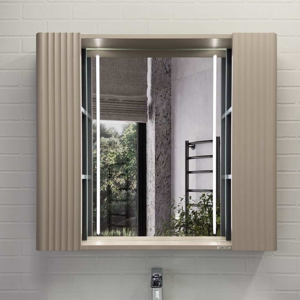 Зеркало-шкаф Comforty Ангара-90 дуб латте с LED подсветкой и антизапотеванием