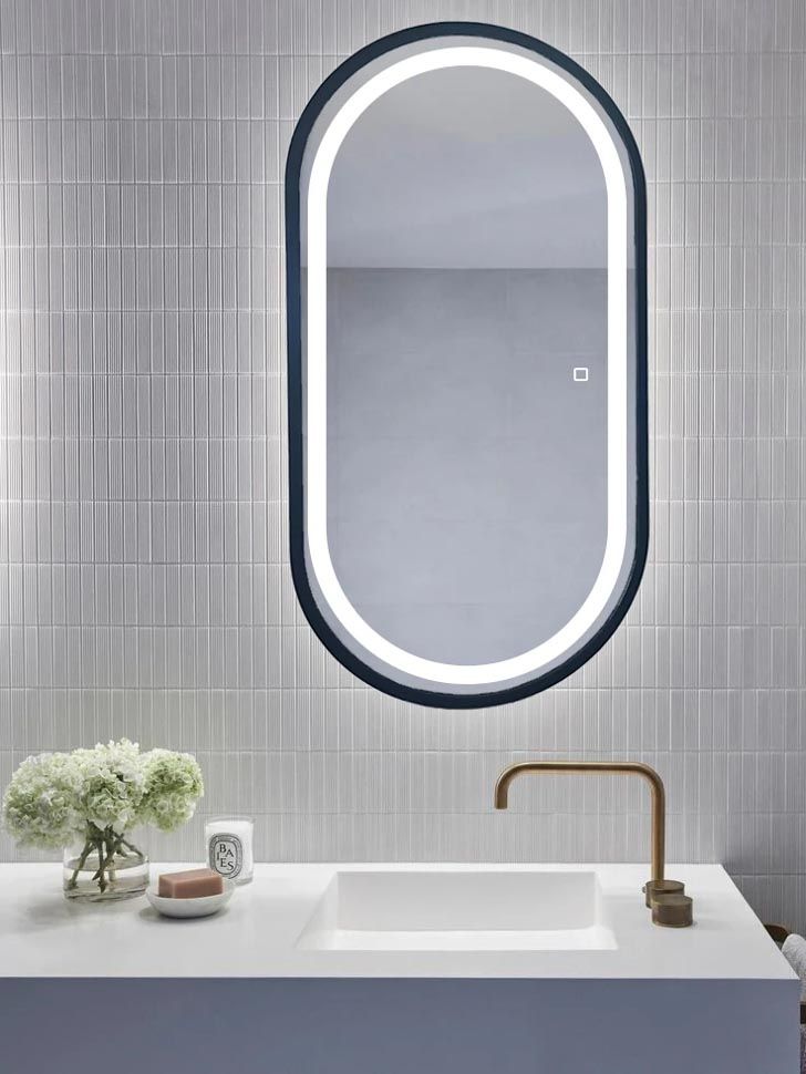 Зеркало с LED-подсветкой в стильной раме черного цвета. Модель сделана из стекла высшего качества M0 (влагостойкое, минимальные оптические искажения). Изделие оснащено сенсорным выключателем с функцией плавного диммирования, с запоминанием последнего значения. Короткие касания светящейся области включают/выключают подсветку, длительное касание меняет яркость свечения. LED-подсветка выдерживает до 50 тыс. часов работы в непрерывном режиме. Экологически чистый продукт выполненный по стандартам ЕС.Материал рамы - пластик (цвет черный)